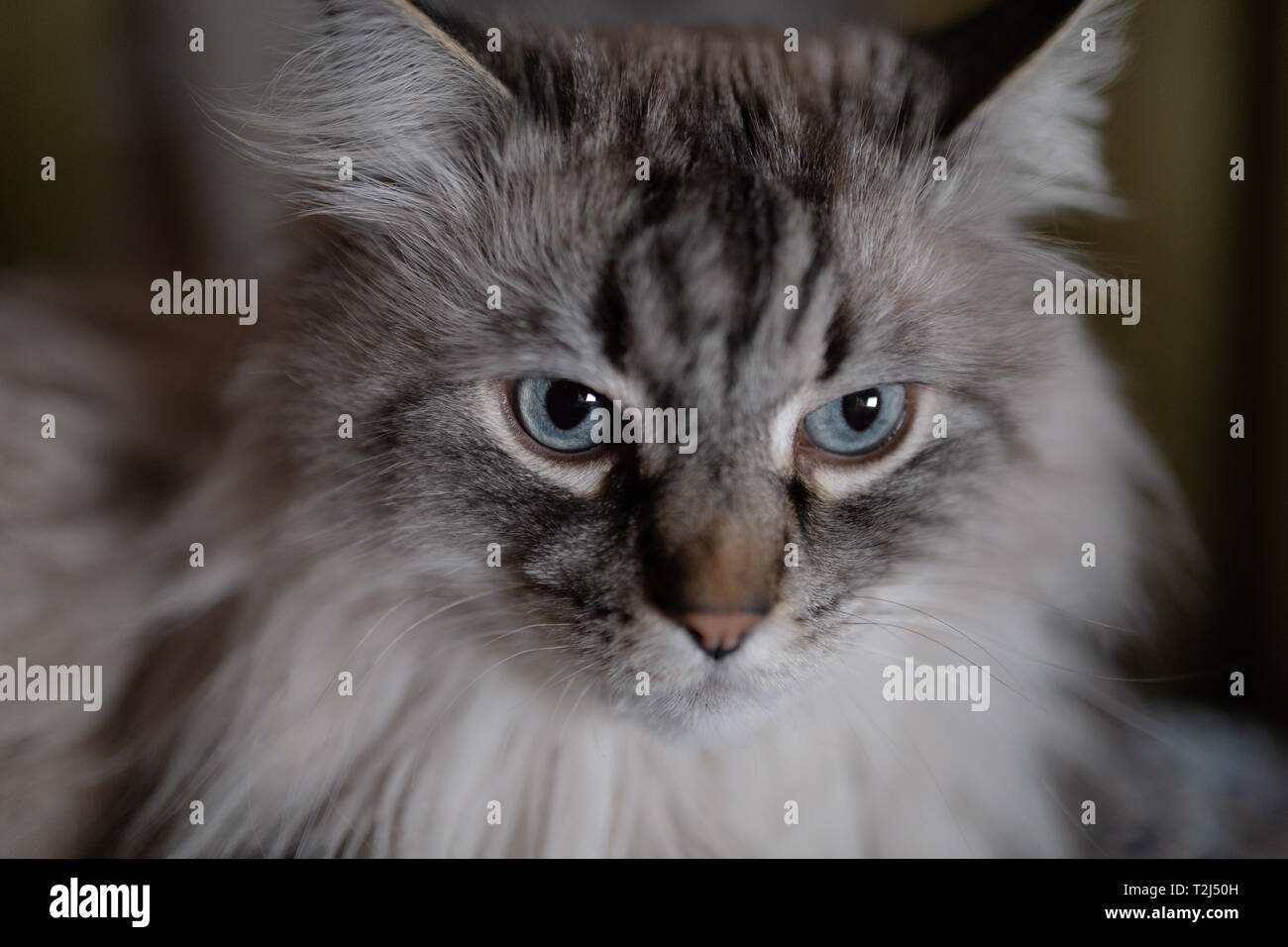 Siberian forest cat with stunning blue eyes.